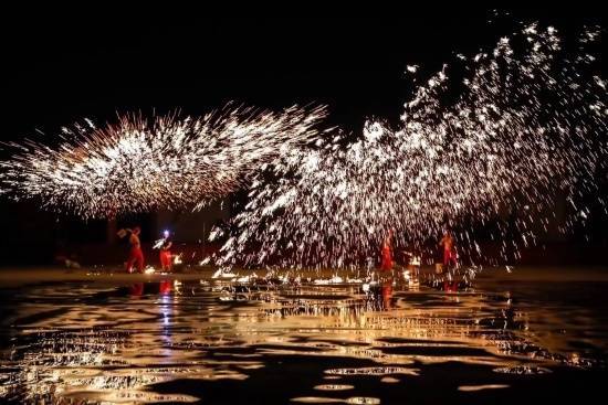 r2.千年打铁花非遗秀:2026年2月6日-2026年3月8日,每日19:00-20:00在演艺广场上演,专业匠人手持千度铁水挥洒成花,铁花飞溅与聊斋宫灯组交相辉映,形成“火树银花映聊斋”的震撼场景。现场设置10米以上安全隔离带,配备防火设施与引导人员,提醒游客穿着棉质衣物、远离危险区域,同时讲解打铁花非遗渊源。