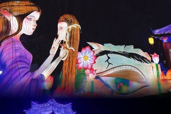 r本次花灯节共设置15 组特色灯组,所有灯组均采用自贡彩灯工艺,兼具观赏性与耐用性。灯组涵盖主题大门、聊斋人物、经典场景、祈福符号四大类别,尺寸从长4米到20米、高4米到8米不等,形成层次丰富、错落有致的视觉效果。灯组与互动项目、演绎场地深度绑定,核心灯组集中分布在主要通道区域,形成“入口迎宾-核心观赏-互动体验-祈福收尾”的游览动线,确保游客在观赏灯组的同时,便捷参与各类活动。