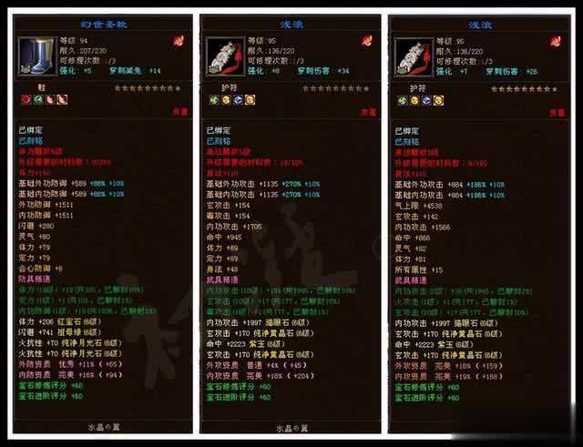 其中两件在水晶の翼身上,可谓件件堪称极品,属性直逼重楼。